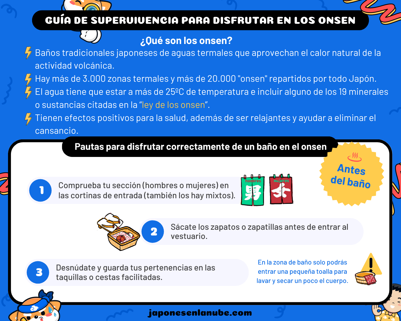 ¡Os explicamos todos los detalles en la siguiente guía de supervivencia en formato infografía! Esperamos que os guste y que os sea muy útil para disfrutar a partir de ahora de un onsen como un auténtico japonés.