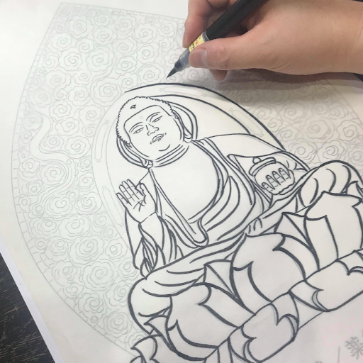 Los monjes budistas japonesas copian y repasan imágenes de Budas o Bodhisattvas como una forma de meditación. Esta práctica combina elementos de meditación y arte, y se considera una forma de entrenamiento espiritual que ayuda a desarrollar la concentración y la atención plena.
